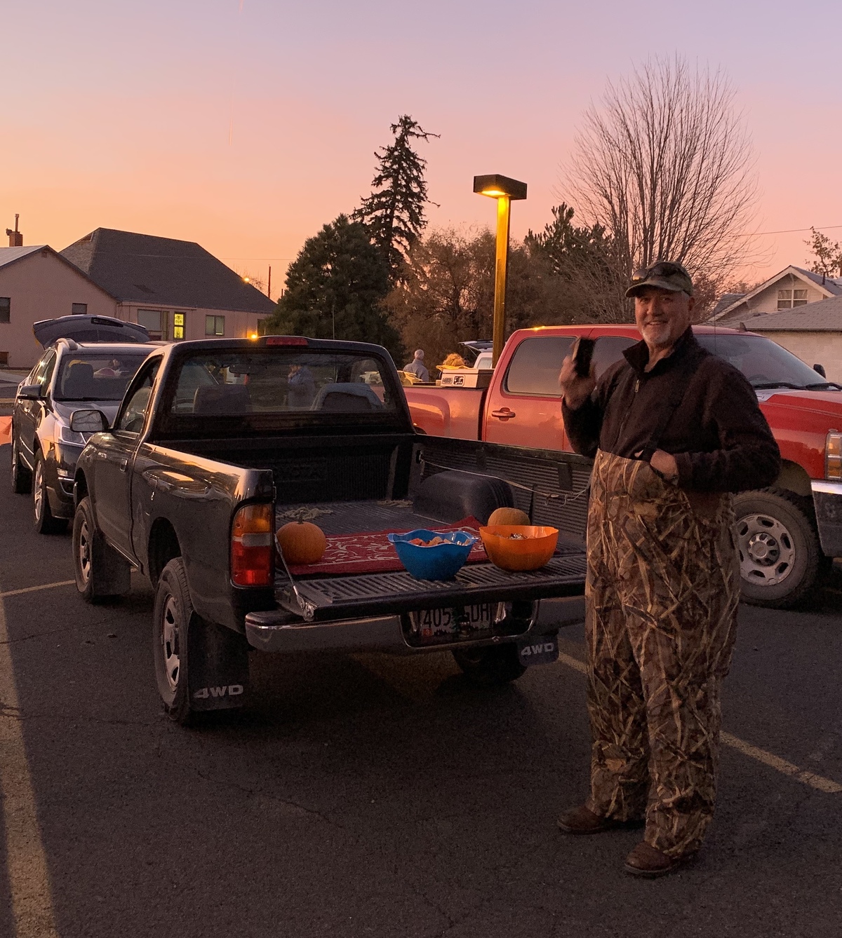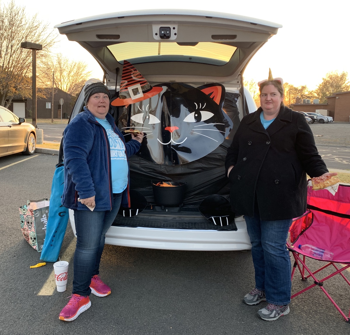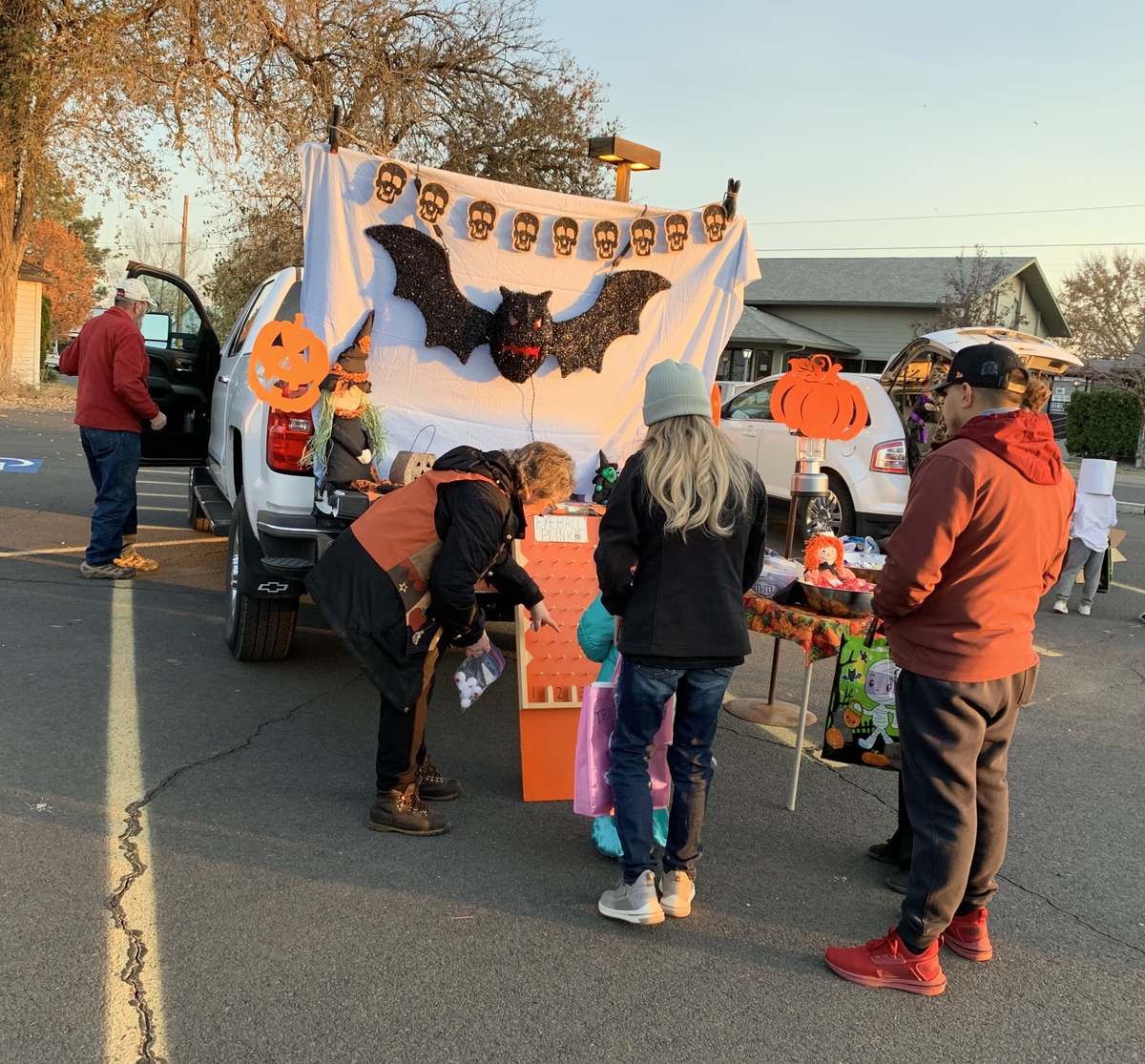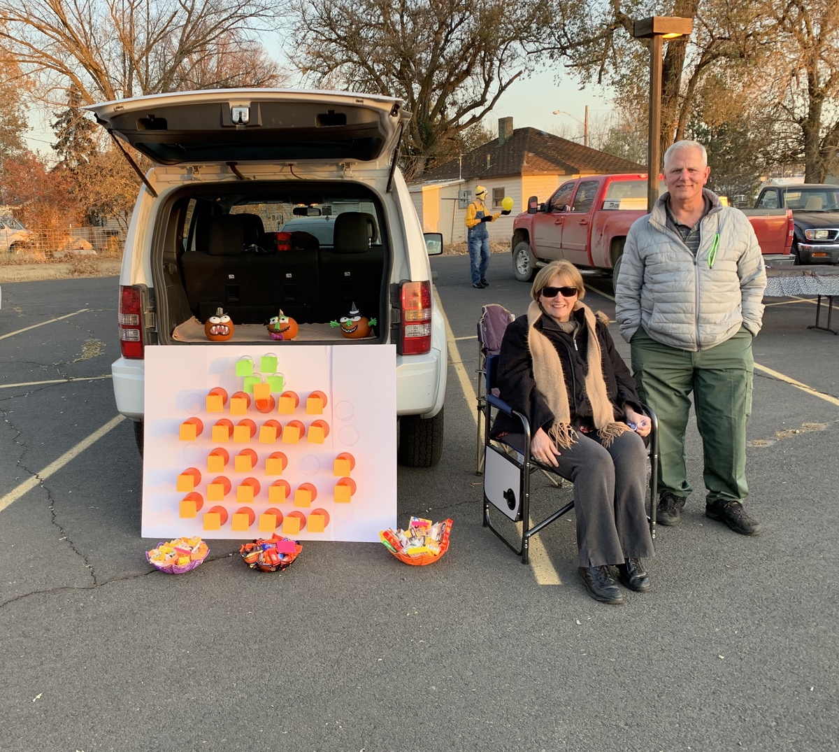 Halloween evening we all parked in the parking lot with our decorations, costumes and candy and had a fun time handing out treats to many children.